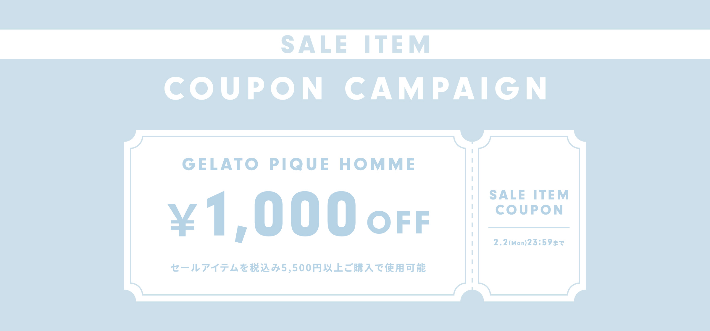 【期間限定】1/30(金)0:00~2/2(日)23:59 SALEアイテム税込5,500円以上のお買い物に使える1,000 円OFFクーポンです。